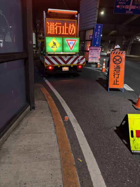 東京外環自動車道下の国道298号線の側道通行止め規制を行いました。