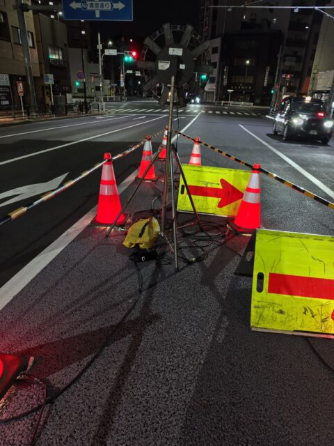 規制内容は、上下追い越し規制を行い足場の設置工事でした。