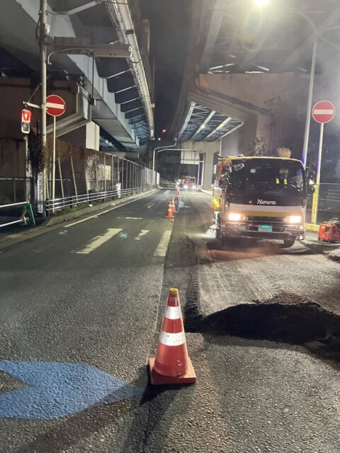 舗装工事の日から、変わりましてある日の都内、橋の補修工事に行ってきました。