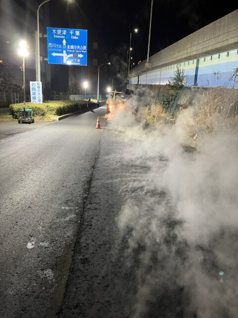 舗装のあとは、煙が凄いですねー、相当熱いんじゃないでしょうか。