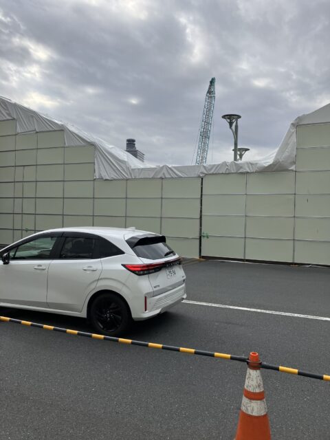 橋の周りは何も見えないくらいに白いパネルに囲われてます。