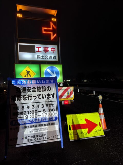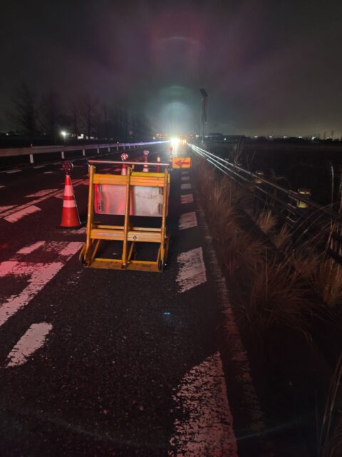 国道17号線の走行車線規制から追い越し車線規制を行いました。