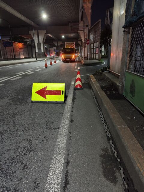 この現場は、多い時でジャパンプロスタッフ4班に分かれて総勢18名で規制を行います。