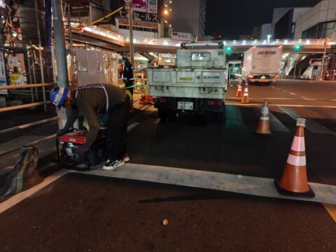 夜勤で都内江東区亀戸の歩道橋架替工事の現場に規制班で行って来ました。