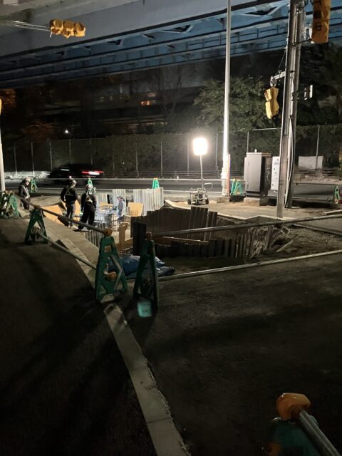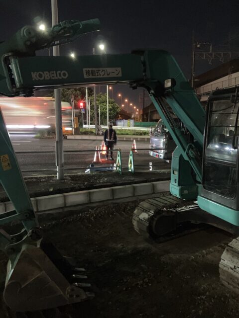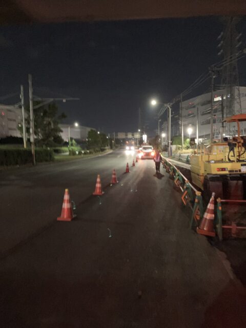 夜間規制で市川あたり、舗装作業を行ってきました。