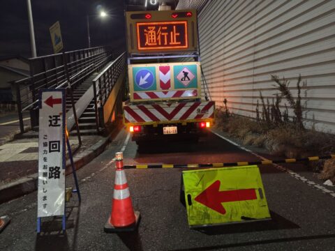 東京外環自動車道の補修工事の現場で国道298号線の側道の通行止めを行いました。